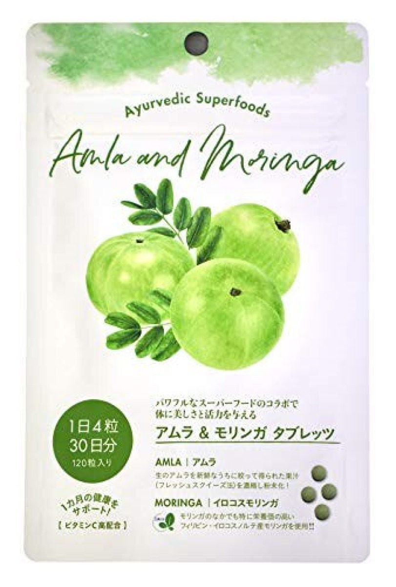 アムラとモリンガはアーユルヴェーダで大切に扱われてきたスーパーフード。アムラのビタミンCはレモンの10倍、ポリフェノールはブドウの30倍ともいわれエイジングケアに必要な成分がたっぷり。 モリンガにはビタミンCや鉄分、カルシウム、アミノ酸をはじめ90種類以上の栄養素が含まれていることから"奇跡の木、の別名も。 ふたつのパワフルな成分を一度に摂れるアムラ&モリンガタブレッツは、あなたに活力と美しさをチャージします。
